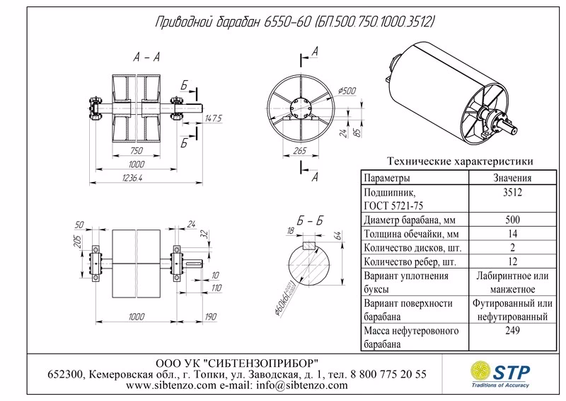 Пример условного обозначения приводного гладкого барабана Ø500 мм, для конвейера шириной ленты В=1000 мм и внутренним диаметром подшипника Ø80: Барабан приводной 10050-80. То же для футерованного барабана: Барабан приводной 10050Ф-80.